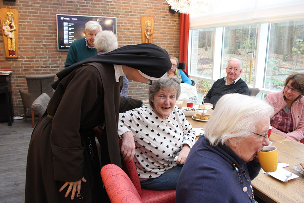 Een wel heel speciale sinterklaasbijeenkomst aangeboden door het personeel: Oda, Willem, Marja en Lenie. Met een prachtige surprise voor de zusters, gemaakt door mevrouw De Haan en een ‘canon’ gemaakt door Pastoor Tuijn. Dat werd gezamenlijk gezongen met pianobegeleiding van mevrouw Nobel.