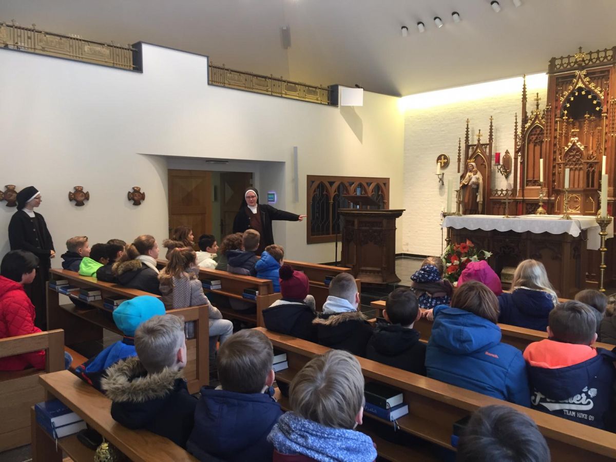 Vrijdag 25 januari was groep 7 van de Jozefschool uit Hillegom bij ons te gast. Zij hadden op school lessen gekregen waarin ook het kloosterleven aan bod kwam. Maar nu wilden ze natuurlijk ook wel eens een modern klooster in het echt zien.